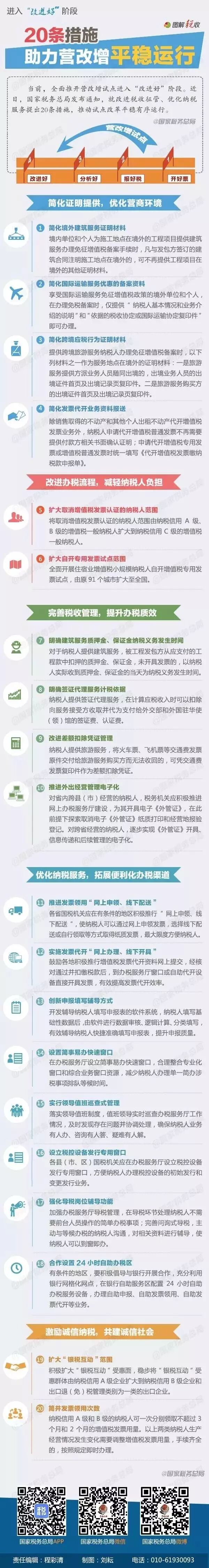近日,国家税务总局在深入查找和整改存在问题的基础上,再次推出五大类20条重要举措,改进税收征管,优化纳税服务,更好解决基层税务机关和纳税人反映的方便办税操作问题,引导纳税人更加及时充分地享受改革红利,为******推开营改增试点“改进好”工作保驾护航。这是******推开营改增试点以来,税务总局第4次发布保障服务措施,此前已先后3次共发布60条纳税服务措施,确保“开好票”“报好税”“分析好”等阶段性目标顺利实现。